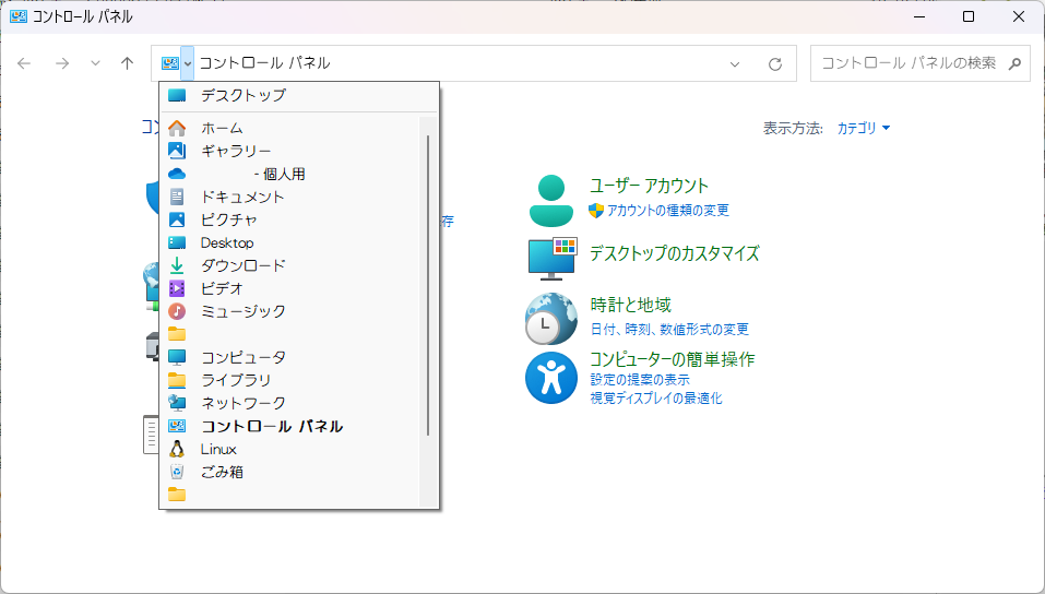 2.アドレスバーを使って任意のフォルダに切り替えます。