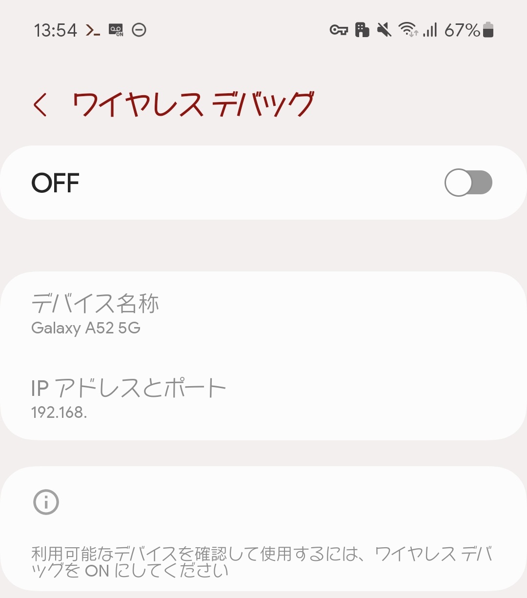 ワイヤレスデバッグをタップして画面に進みます。
