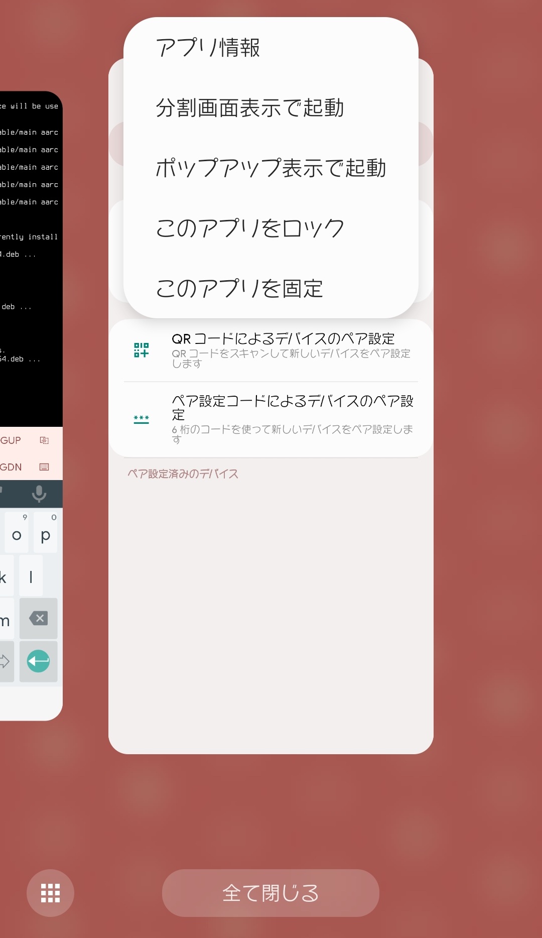 次に、ペアリングをするためにこの設定画面とTermuxを2画面にします。