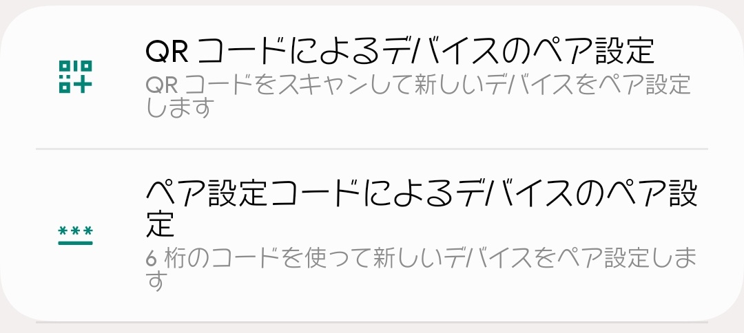 次に、設定画面でペア設定コードによるデバイスのペア設定を選択します。