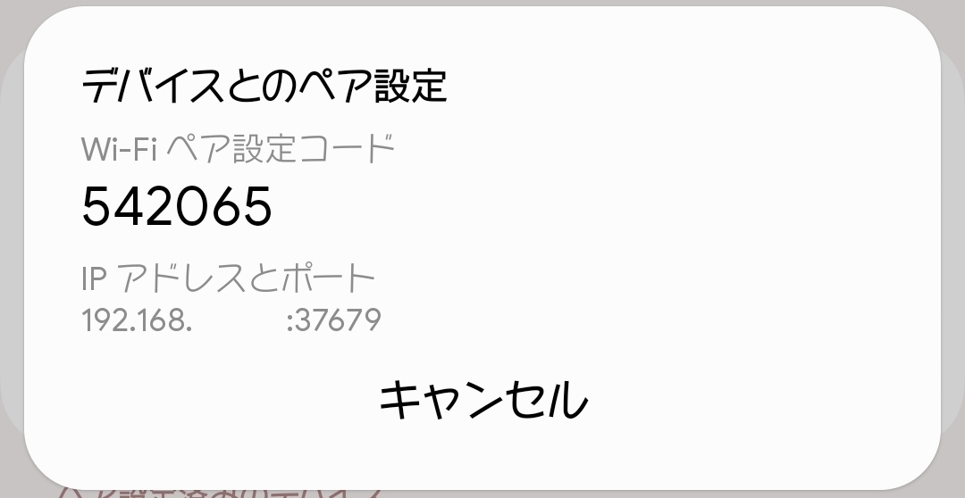 このペア設定コードは上図のように表示された場合。環境により異なります。